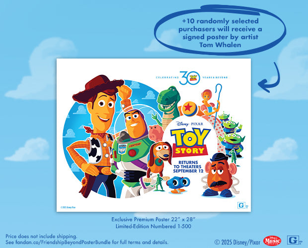 Celebrate 30 Years of Toy Story with the Friendship & Beyond Poster Bundle! For just $50 (plus shipping), this exclusive bundle includes a 22" x 28" Toy Story 30th Anniversary poster, individually numbered (#1–500), with 10 randomly selected copies signed by artist Tom Whalen.