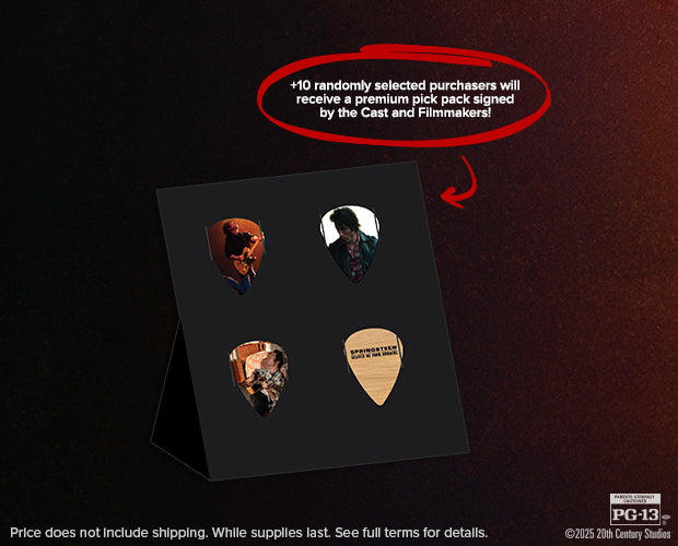 Premium Pick Pack is non-refundable. While supplies last. Domestic shipping will be added at checkout. Movie ticket is non-refundable and non-exchangeable. Fandango reserves the right to modify or cancel this offer at any time and without notice. You must be 18 years of age or older to purchase a bundle. The guitar picks will begin shipping in the month of October. Please use a physical address where the item can be delivered. Once carrier confirms delivery, Fandango is not responsible for lost or stolen deliveries. Universal Pictures Marketing and its affiliates are not sponsors of this bundle.